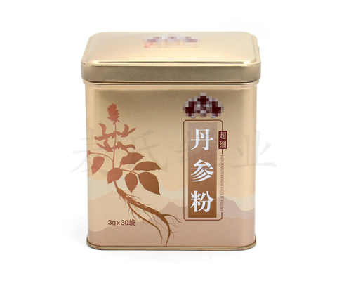 這款丹參粉馬口鐵鐵罐的制作基材是國產一級馬口鐵打造而成,選用單面四色印刷工藝,盒面過光油,盒內過金油,在美化外觀的同時,也起到了保護鐵罐的作用。為了配合客戶快速開發新型鐵罐包裝產品,公司配置了電腦3D效果圖制作、塑料手板和鐵罐模具制作部門,模具車間配置了精密的銑床、磨床、車床、焊接、切割、雕刻等成套制罐模設備和經驗豐富的鐵罐模具工程師隊伍以保證客戶的新產品開發得以在2-4個星期內迅速實現,保證公司的產品創新和鐵罐開發能力足以滿足市場快速變化的需求 。