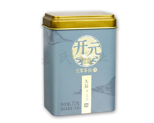 此款普洱茶馬口鐵罐為雙面CMYK四色印刷處理,內外過水性亮光油,,過油目的不僅能提高馬口鐵罐整體效果,具有強烈的金屬質感外,還對鐵罐印刷面形成一層致密的保護膜,對鐵罐刮花、防銹起到一定的防護作用。除了過光油外,客戶還可選擇過金油、爆炸油、皺紋油、珠光油等。