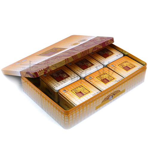十二個(gè)裝月餅豪華鐵罐表面處理為單面四色+專色,富士印鐵設(shè)備輥筒膠印;內(nèi)外過光油,而外觀效果選擇眾多,可過啞光油、珍珠油、爆炸油、皺紋油、橡皮油等方式。在打樣過程,可選擇多種外觀效果進(jìn)行制作比較。