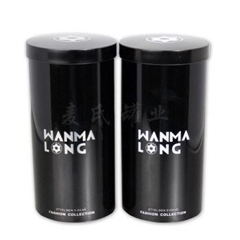 黑色圓形儲物鐵罐子結構尺寸:85*175mm,材質:0.23mm鍍錫馬口鐵制作;印刷:單面或雙面四色/專色印刷??勺黾ね?。雕刻工藝??商峁┰O計稿件由鐵盒生產廠家麥氏罐業訂做
