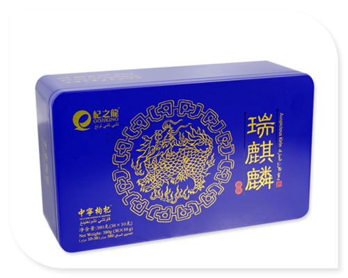 此款精品黑枸杞包裝盒(枸杞鐵盒包裝,枸杞鐵盒廠家)采用單面1專(zhuān)色+四色印刷工藝制作,外過(guò)水性亮光油,內(nèi)過(guò)金油,鐵盒整體為蓋、身、底印刷處理。此款鐵盒為216*136*70mm的規(guī)格尺寸,可包裝360g不等的枸杞,可選擇大容量的包裝需求。