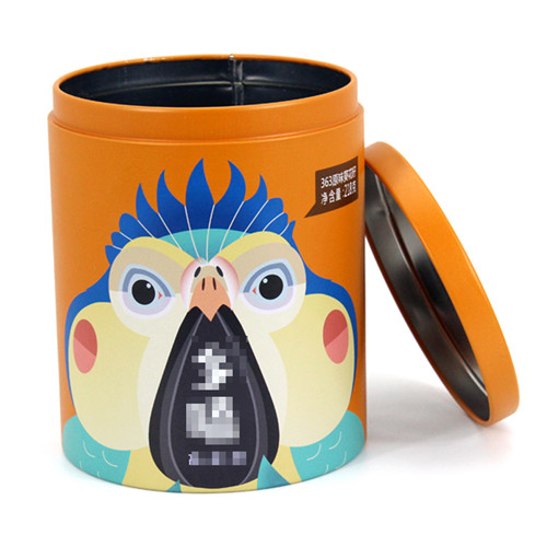 卡通圓形葵花籽年貨鐵罐包裝_食品點心馬口鐵盒廠家包裝定制