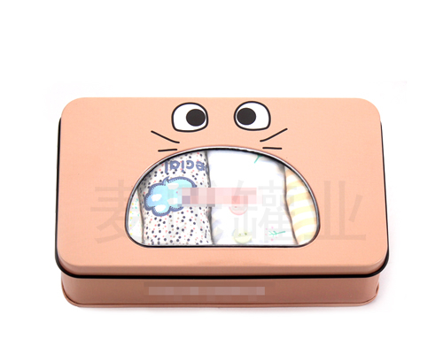 此款男士內褲鐵罐為經典的長方形造型設計,128*95*28mm尺寸,可包裝2條不等的內褲產品,。為了順應多樣化的市場包裝需求,此款男士內褲鐵罐可做成正方形、心形、圓形、橢圓形、車形、書本形等異形造型。