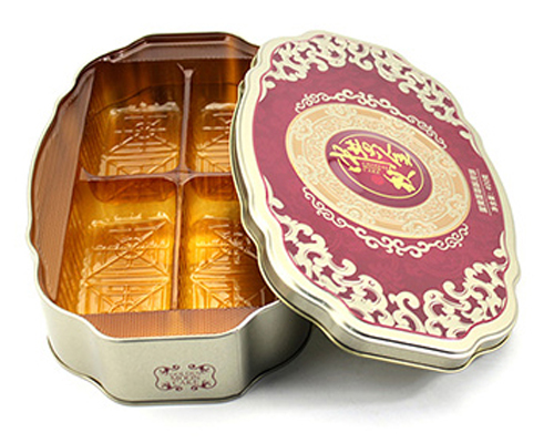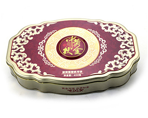 這款蛋黃蓮蓉酥月餅鐵盒的尺寸為310-195-60mm,為了順應多樣化的市場包裝需求,這款糖果馬口鐵盒可做成心形、正方形、橢圓形、車形、書本形等異形造型。