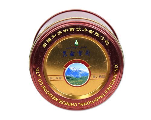 • 圓形昆侖雪菊鐵罐,茶葉馬口鐵罐包裝